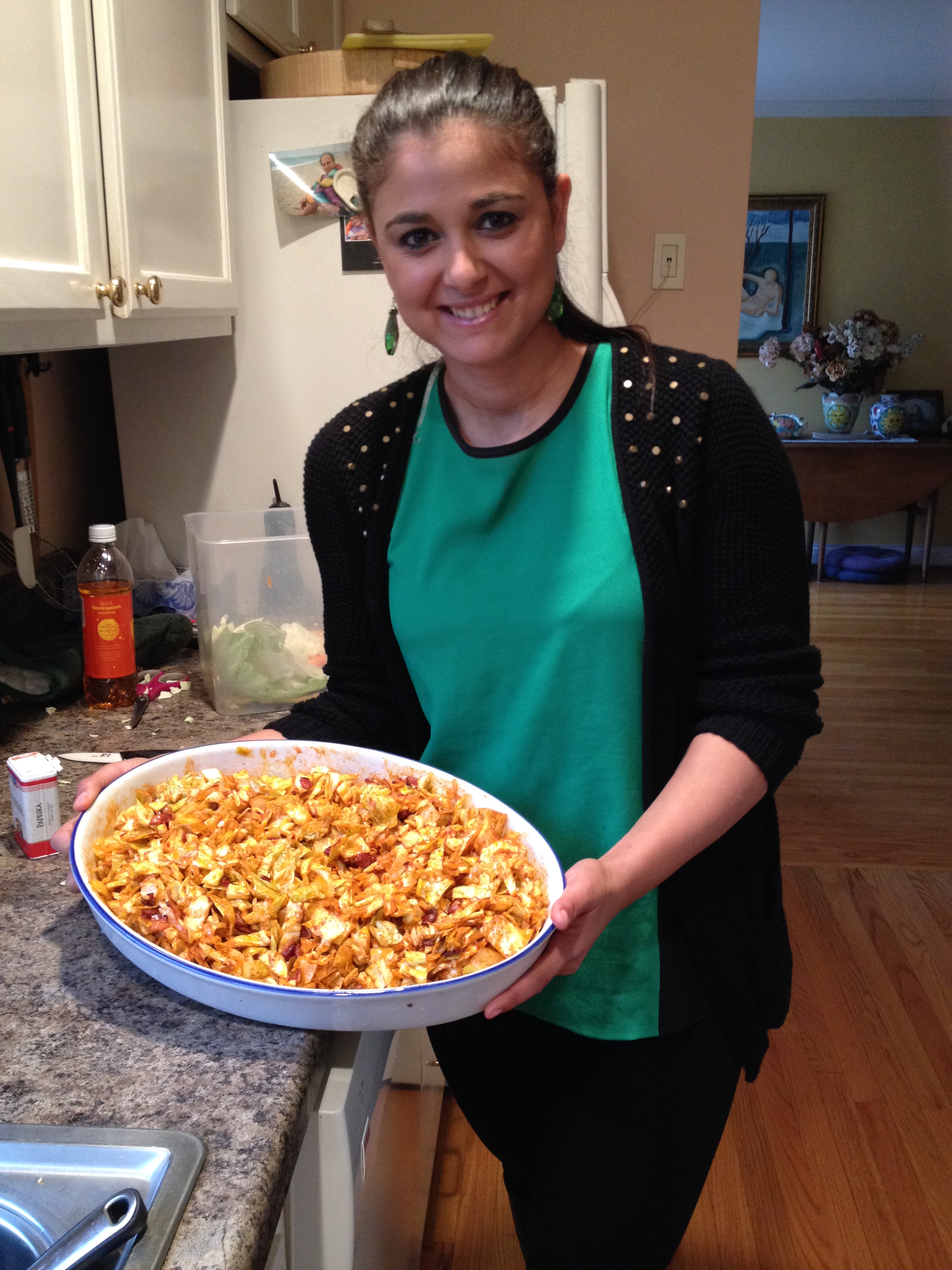 Saute the onion in the vegetable or olive oil. In a separate pan, saute the bacon. Put the cabbage in a large, flat baking dish. Mix with 2 T paprika. Add bacon and its grease and onion and its oil. Mix well with another 2 T paprika. I know, it’s a lot of paprika, but your goal is that the cabbage looks rosy like the picture above (with Emilia herself). And this is Eastern Europe, remember. Paprika Land. Emilia drizzles on a couple more T of olive oil because she likes oil. You can do this or not. Bake for about an hour at 350, turning several times. Eat and enjoy. You can dip bread in the peppery oil, the Bulgarian way.
